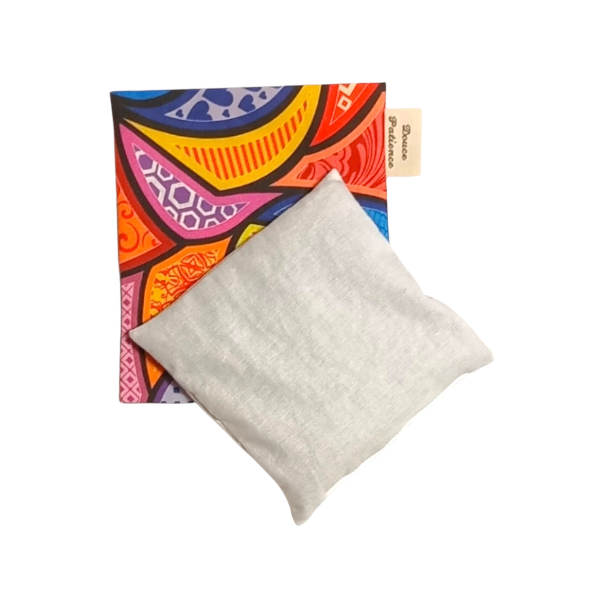 Cousue à la main dans mon atelier, housse 100% coton Oeko-Tex garnie de graines de lin brun bio, elle diffuse une chaleur douce et bienfaisante.