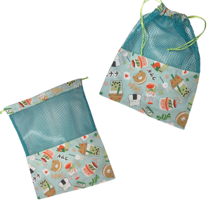 Cousu à la main dans mon atelier, fabriqué en filet tulle léger et coton certifié Oeko-Tex, ce sac est idéal pour transporter vos fruits, légumes ou autres produits en vrac. Réutilisable à l’infini, il vous accompagne dans votre démarche zéro déchet.