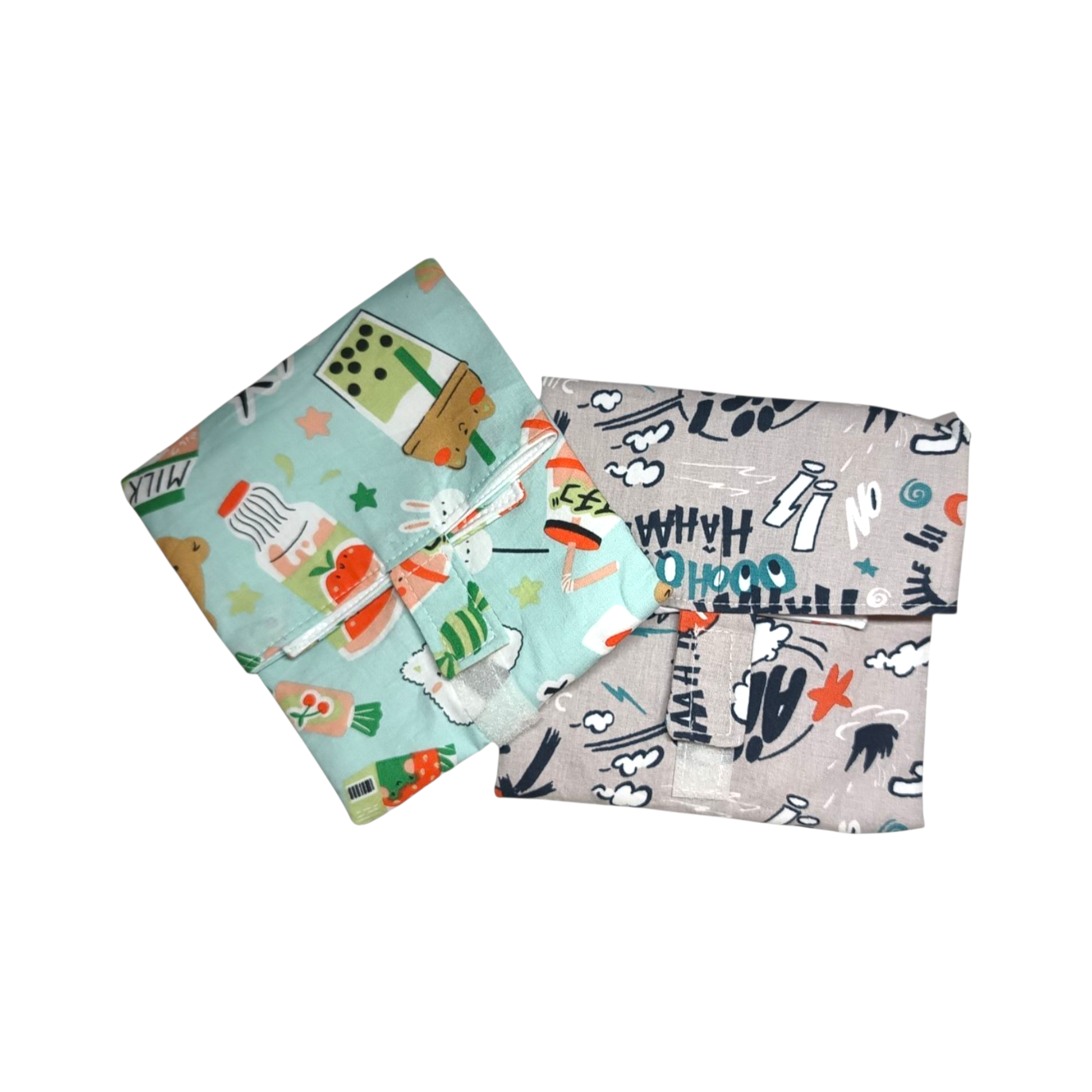 Usage unique pratique: place sandwich au centre, replie les bords, ferme avec scratch. Facile à entretenir: lavage éponge humide ou machine 30°C.